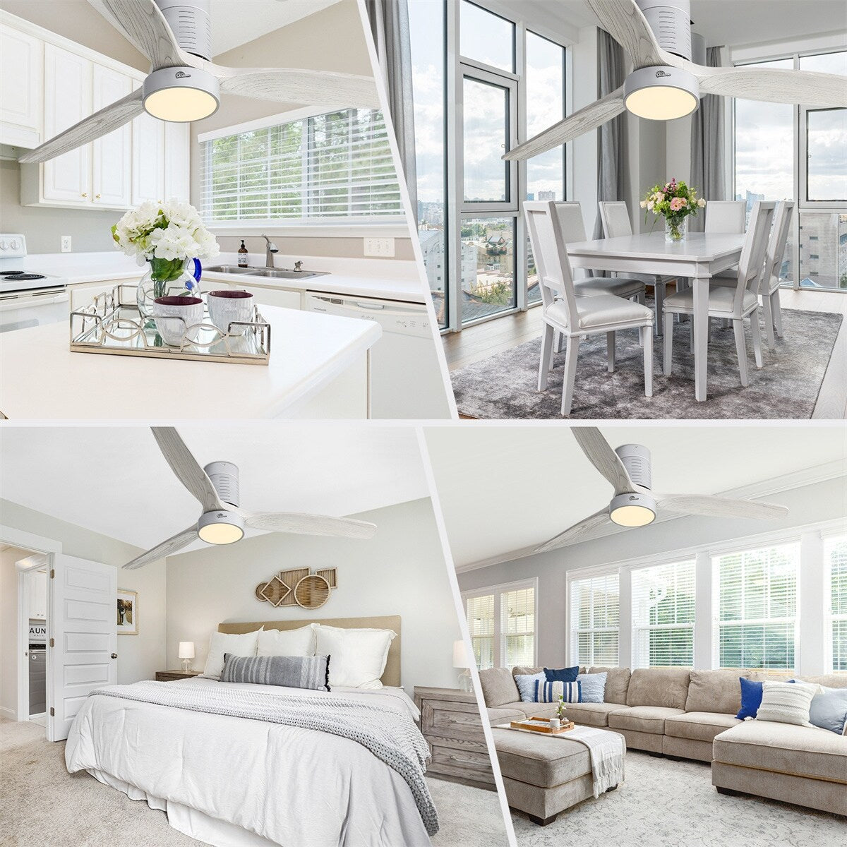 Ventilateur de plafond encastré de style campagnard de 52 pouces avec éclairage et télécommande, moteur CC réversible