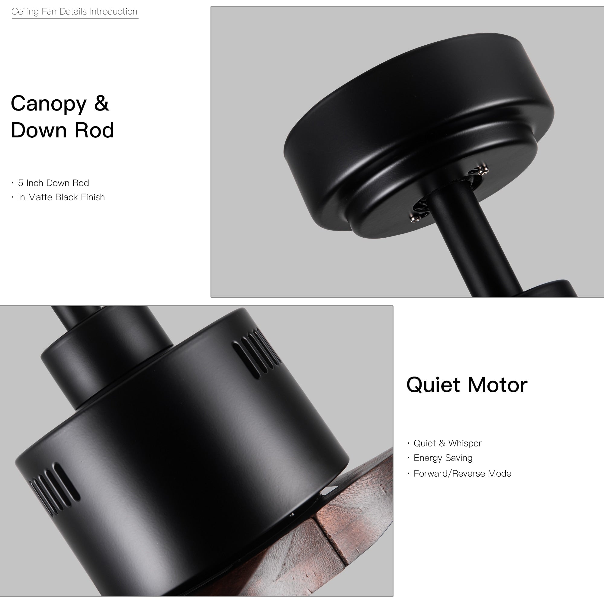 Ventilateur de plafond moderne en bois massif/ABS de 52 pouces avec télécommande (sans lumière), 6 vitesses de vent, flux d'air réversible