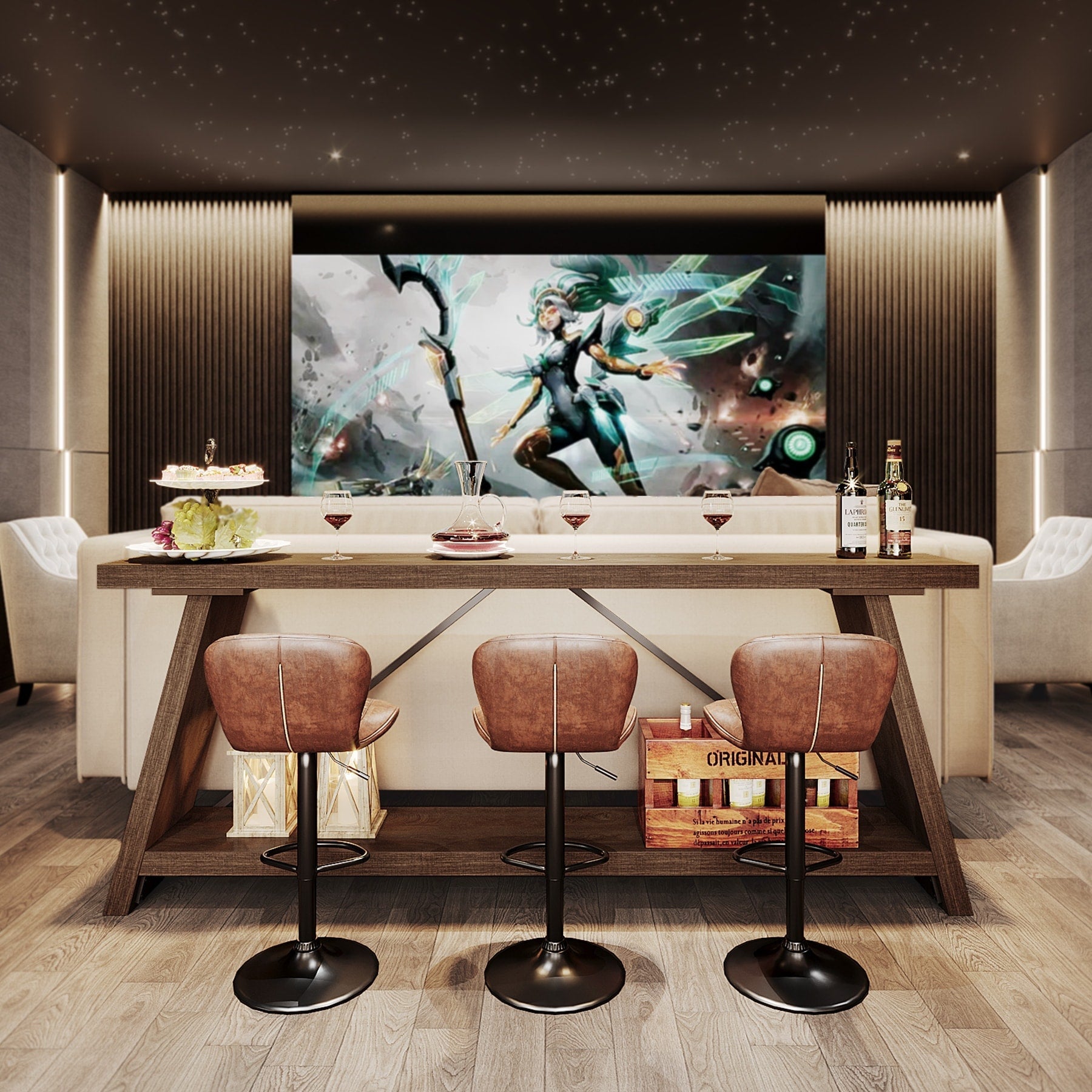Cette table basse marron rustique sublimera n'importe quel décor et mettra en valeur vos objets précieux grâce à ses deux niveaux de rangement généreux. Avec son design fin et allongé, cette table est un ajout polyvalent, parfait comme table basse, console d'entrée ou meuble TV. Fabriquée en MDF de haute qualité et en métal robuste, elle garantit une longue durée de vie.