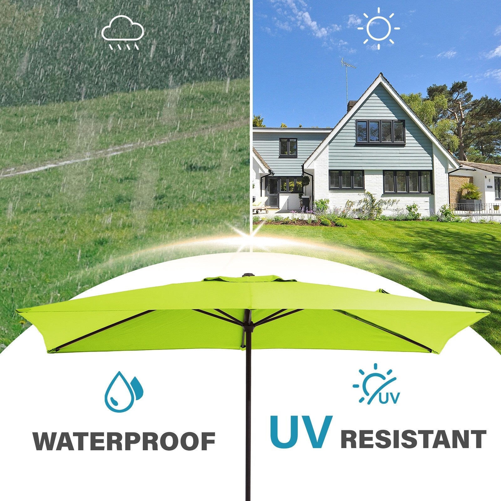 Transform your outdoor space with this 8ft rectangular patio umbrella, offering a perfect blend of style, durability, and functionality. The spacious rectangular canopy provides ample shade, making it ideal for larger patios, garden seating areas, or rectangular dining tables. Made with high-quality, UV-resistant, and waterproof fabric, it ensures protection against harmful sun rays and unexpected rain, allowing you to enjoy your outdoor moments worry-free.The umbrella is built with a strong central iron pole and reinforced ribs, delivering excellent stability even in windy conditions. Its user-friendly tilt button allows you to adjust the canopy angle effortlessly, ensuring optimal shade throughout the day. Designed with a vented top, it enhances airflow, reducing wind pressure while keeping you cool and comfortable.Whether you're hosting outdoor gatherings, relaxing in the garden, or enjoying poolside leisure, this 8ft rectangular umbrella is the perfect addition to elevate your outdoor experience with reliable performance and modern elegance.