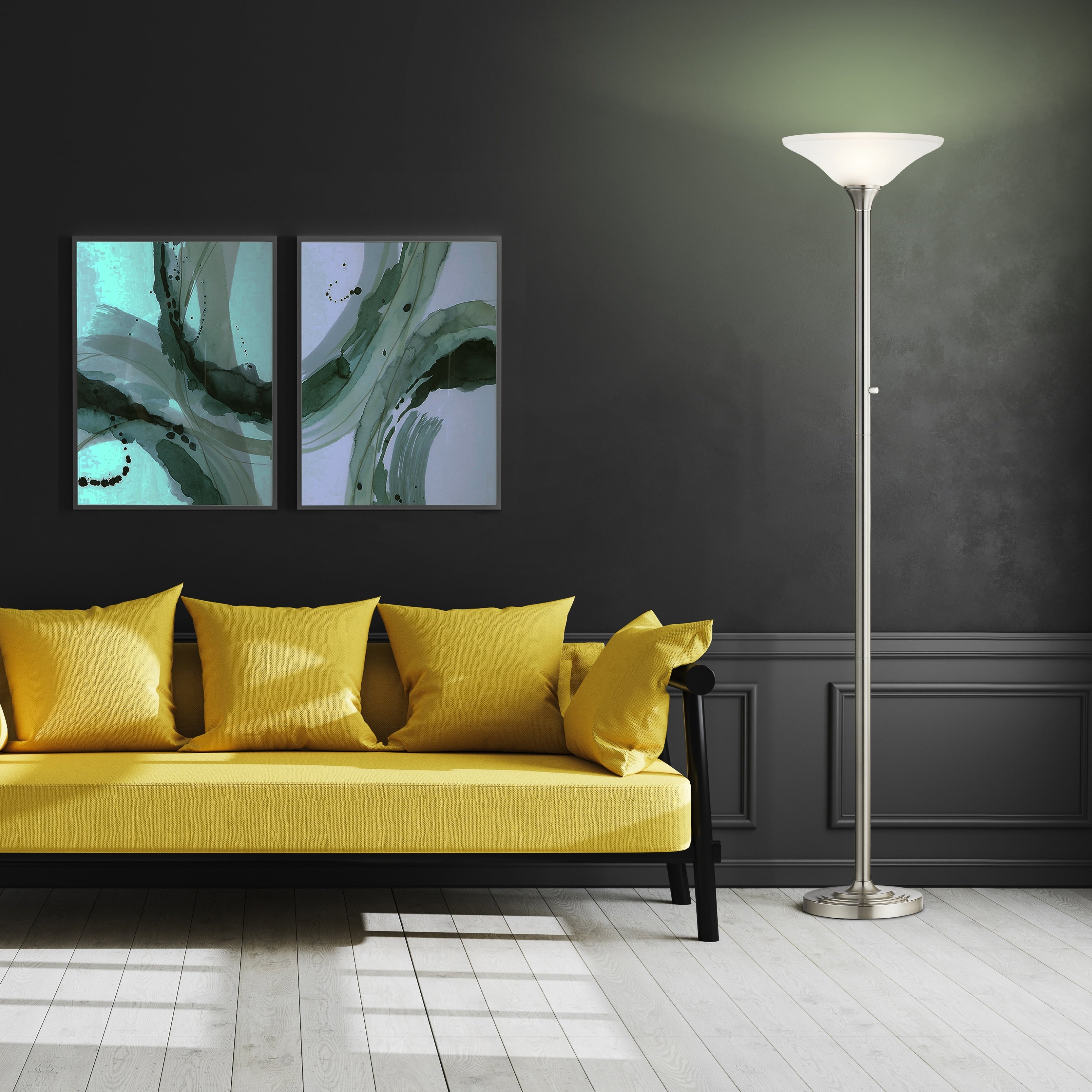 Sublimez votre maison ou votre bureau avec ce magnifique lampadaire torche LED en verre martelé d'Artiva USA. Équivalent à 150 W, il consomme seulement 15 W d'électricité. 2200 lumens, lumière blanc chaud 3000 K. Design torche LED simple et moderne avec finition acier brossé. Avec variateur LED exclusif à gamme complète. Compatible avec les prises intelligentes. Lampadaire LED simple et moderne avec finition nickel brossé. Équivalent à 150 W, il consomme seulement 15 W d'électricité. 2200 lumens, 3000 K. LED exclusive à vision à 360 degrés. Base robuste. 71 pi de hauteur, avec un magnifique abat-jour en verre martelé de 15 pi de diamètre. Variateur LED exclusif à gamme complète.