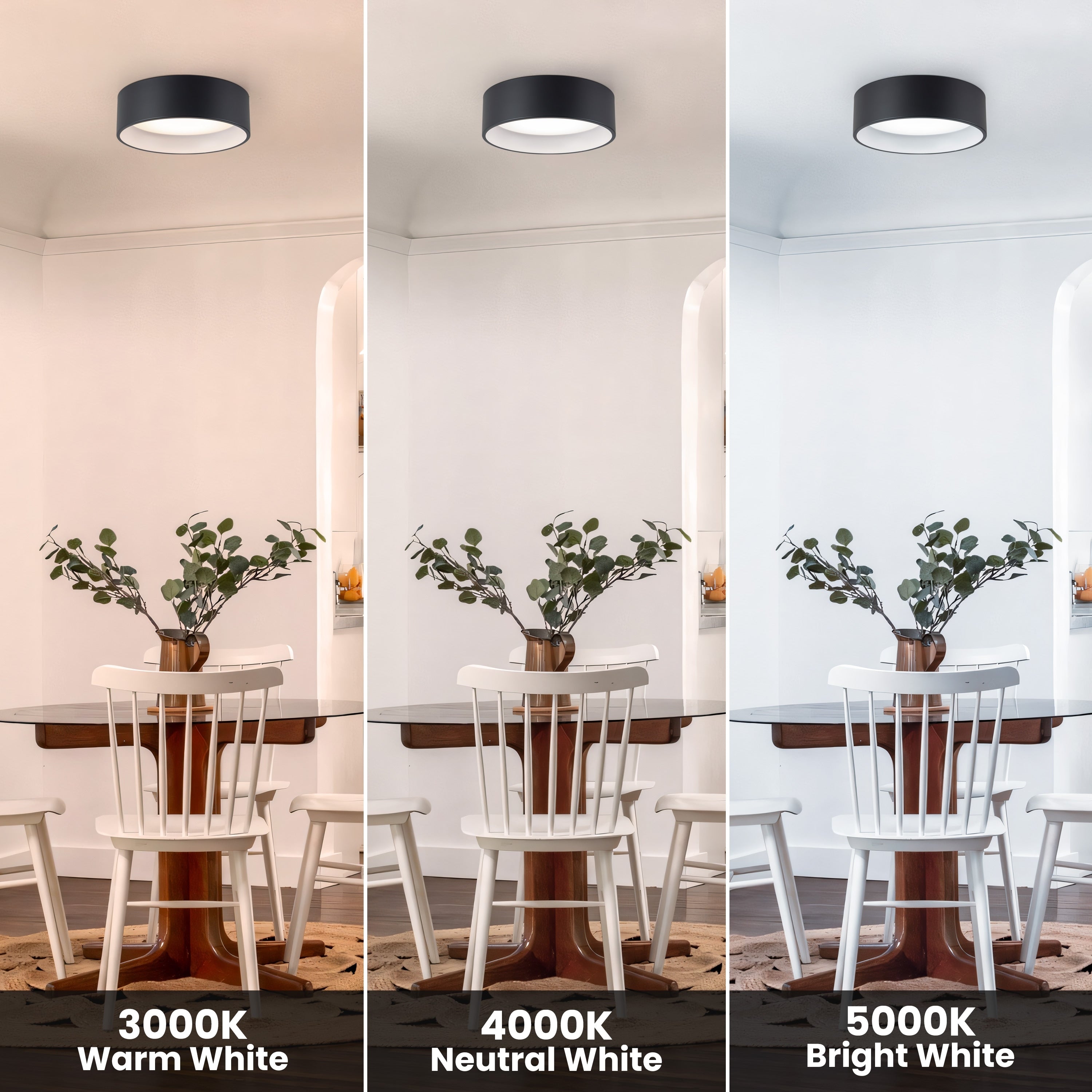 - Built-in 25W/28W 1800lm/2200lm energy-saving LEDs, 3000K/4000K/5000K color temperature adjustable.