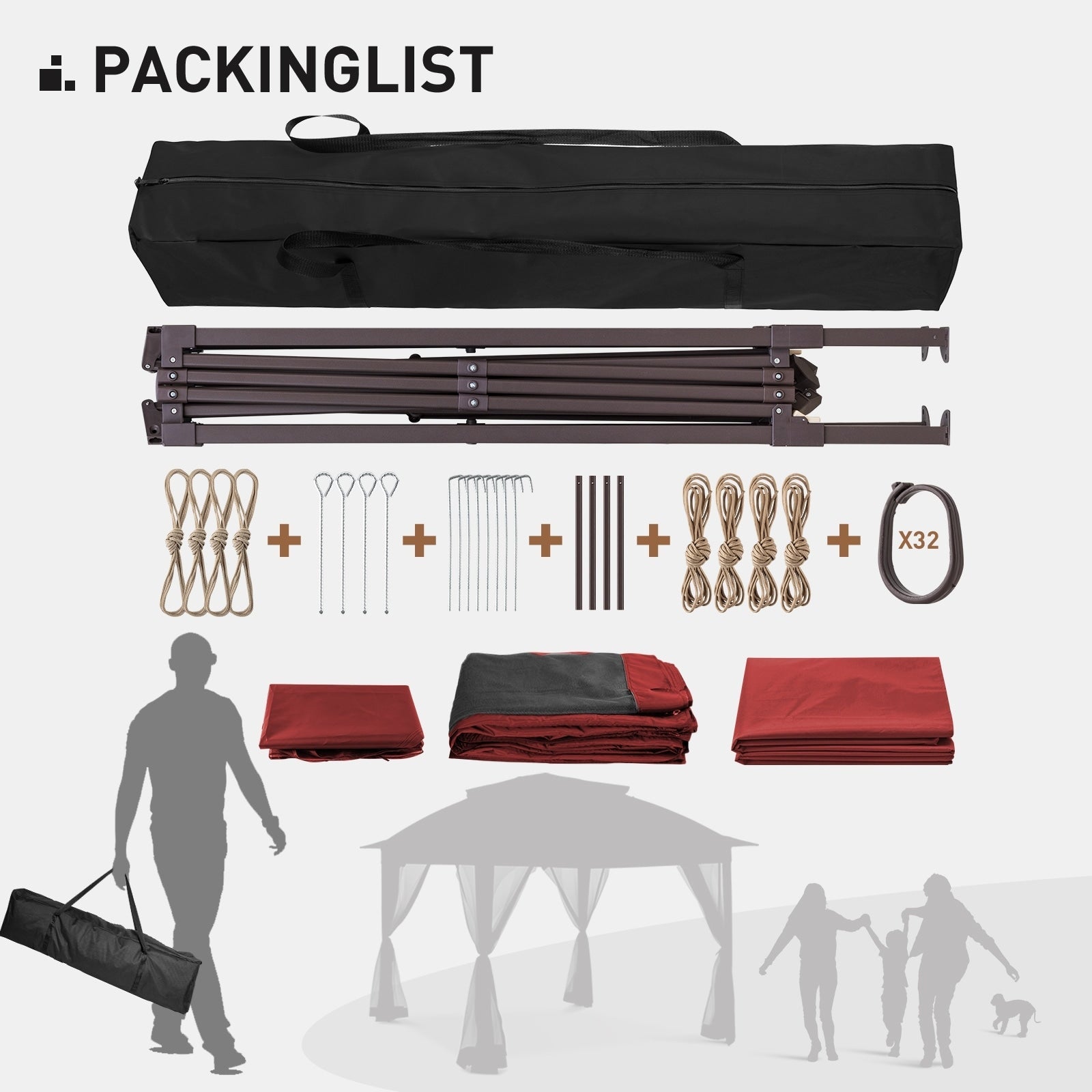 - Toit ventilé à deux niveaux - Ce gazebo est doté d'un toit à deux niveaux conçu pour vous offrir un espace confortable et aéré, vous évitant ainsi une sensation d'étouffement, même en été. L'avant-toit prolongé est soigneusement fini pour éviter l'accumulation de pluie. Ses dimensions de 3,3 m x 3,3 m offrent une couverture de 11,8 m² et peuvent accueillir jusqu'à 6 personnes.