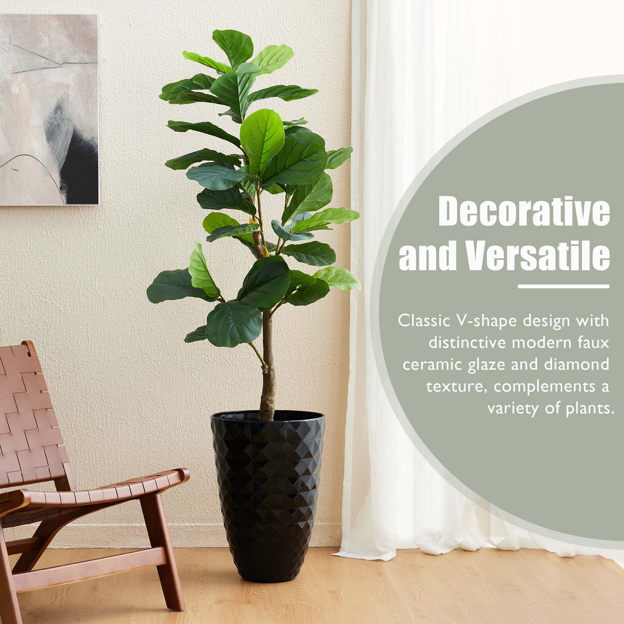 Glitzhome 19.75 H Eco-Friendly Oversized Faux Ceramic Diamond Textured Tall Planter Porch Flowerpot (Set of 2)
