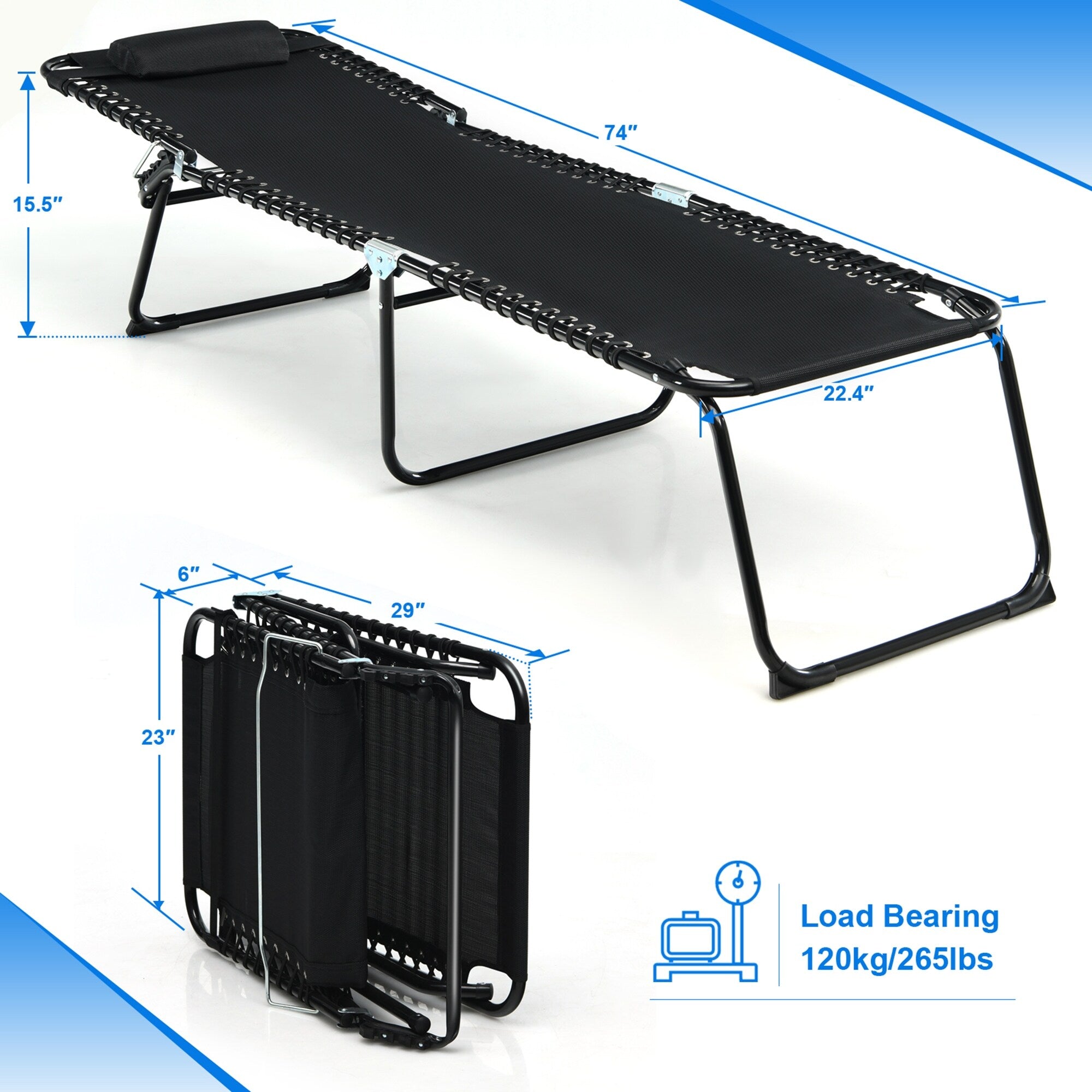 Dimensions déplié : 74,5'' x 23'' x 15,5'' (L x l x H)