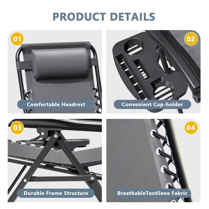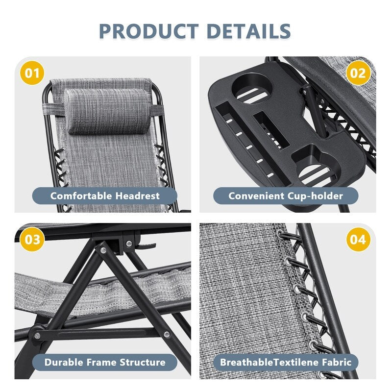 - Package Included: 2 x Patio Zero Gravity Chair