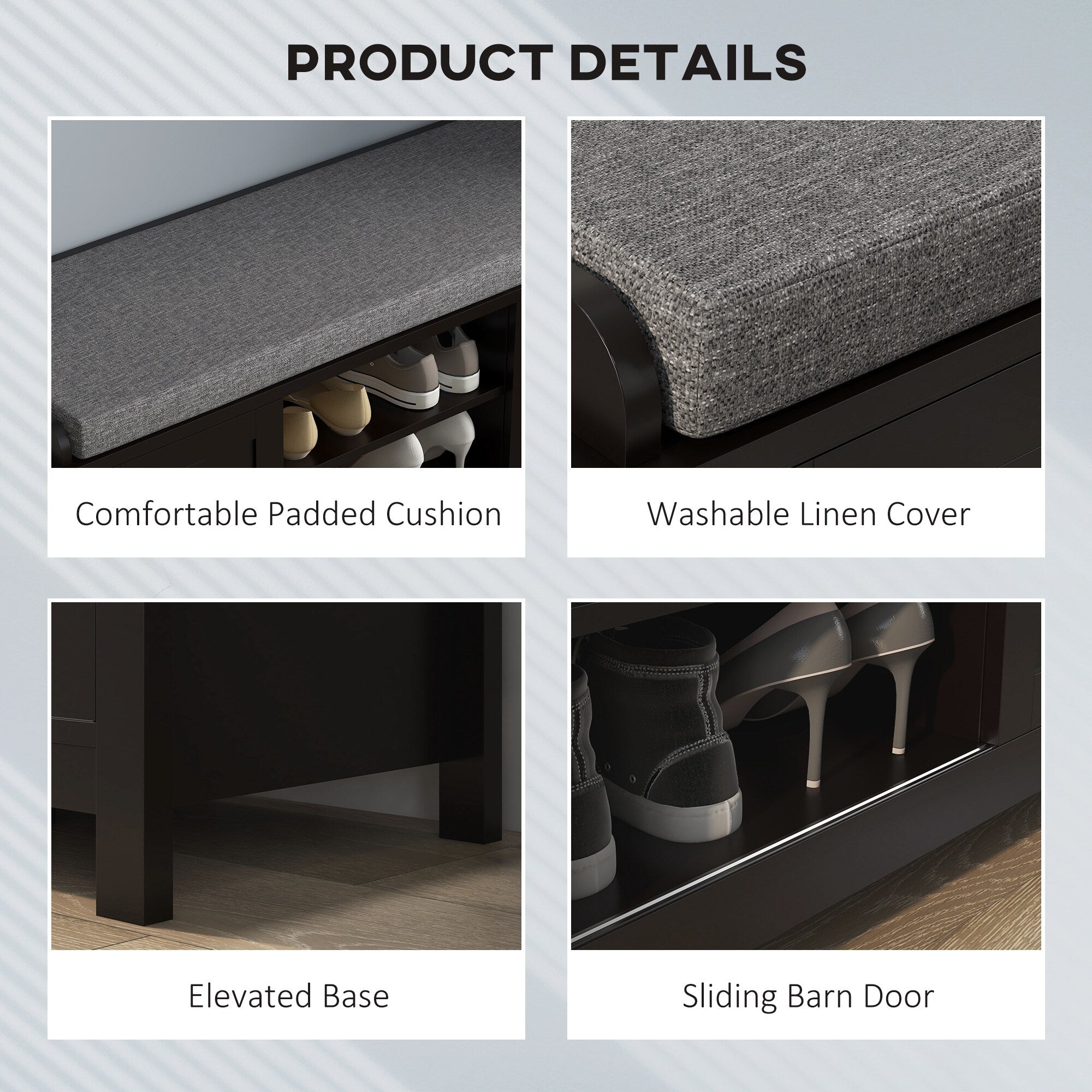 Banc à chaussures d'entrée HOMCOM avec rangement ottoman et étagères réglables, 6 compartiments et assise rembourrée, blanc/gris