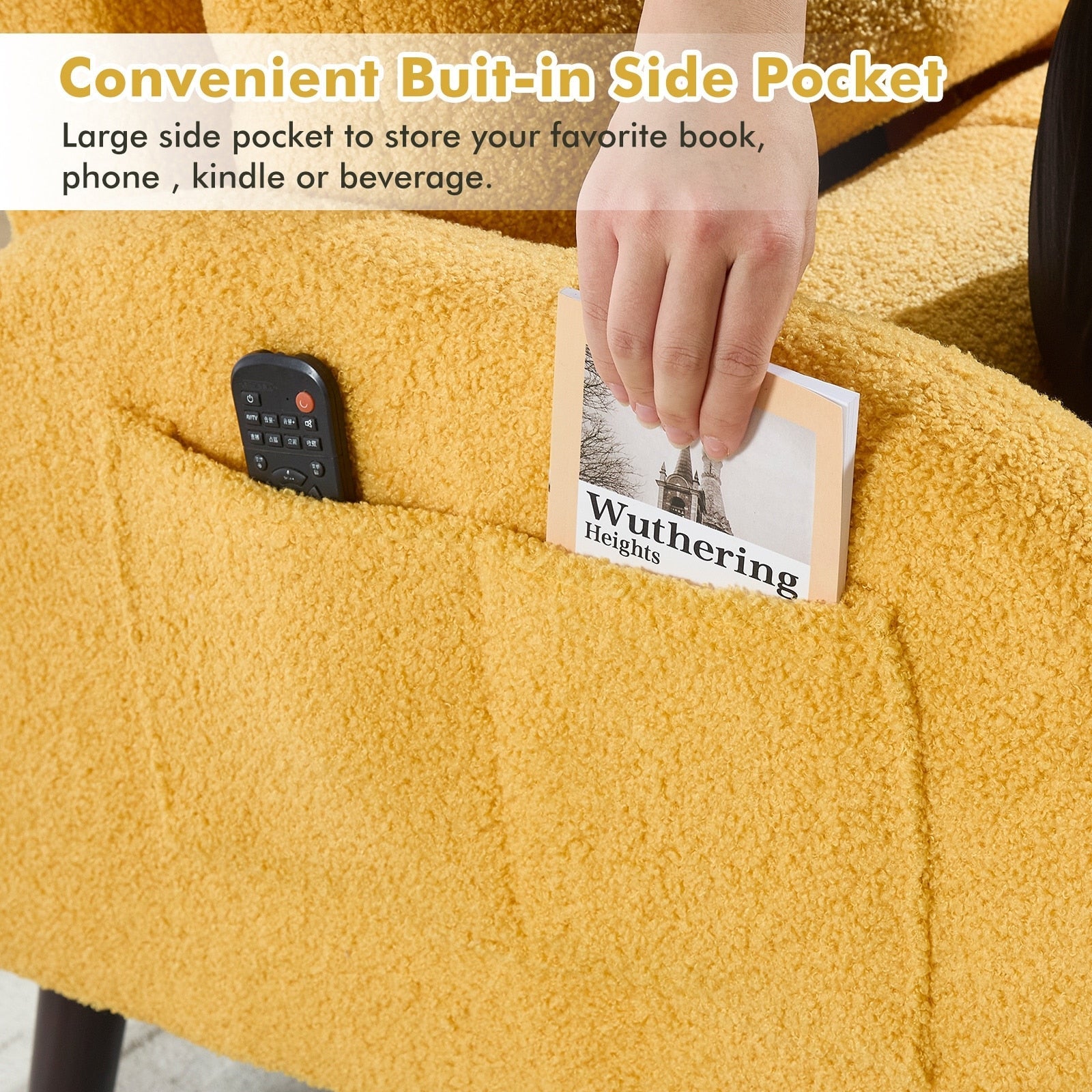Cette chaise d'appoint avec pouf est partiellement améliorée par rapport au modèle de base d'origine, avec une grande poche de rangement ajoutée sur le côté, ce qui est pratique pour ranger tous les articles que vous souhaitez. La nouvelle fonction de rangement du pouf, un rangement quotidien polyvalent et pratique, rend votre maison plus rangée et pratique pour votre vie, pour vous offrir plus de commodité, l'article sera à portée de main.
