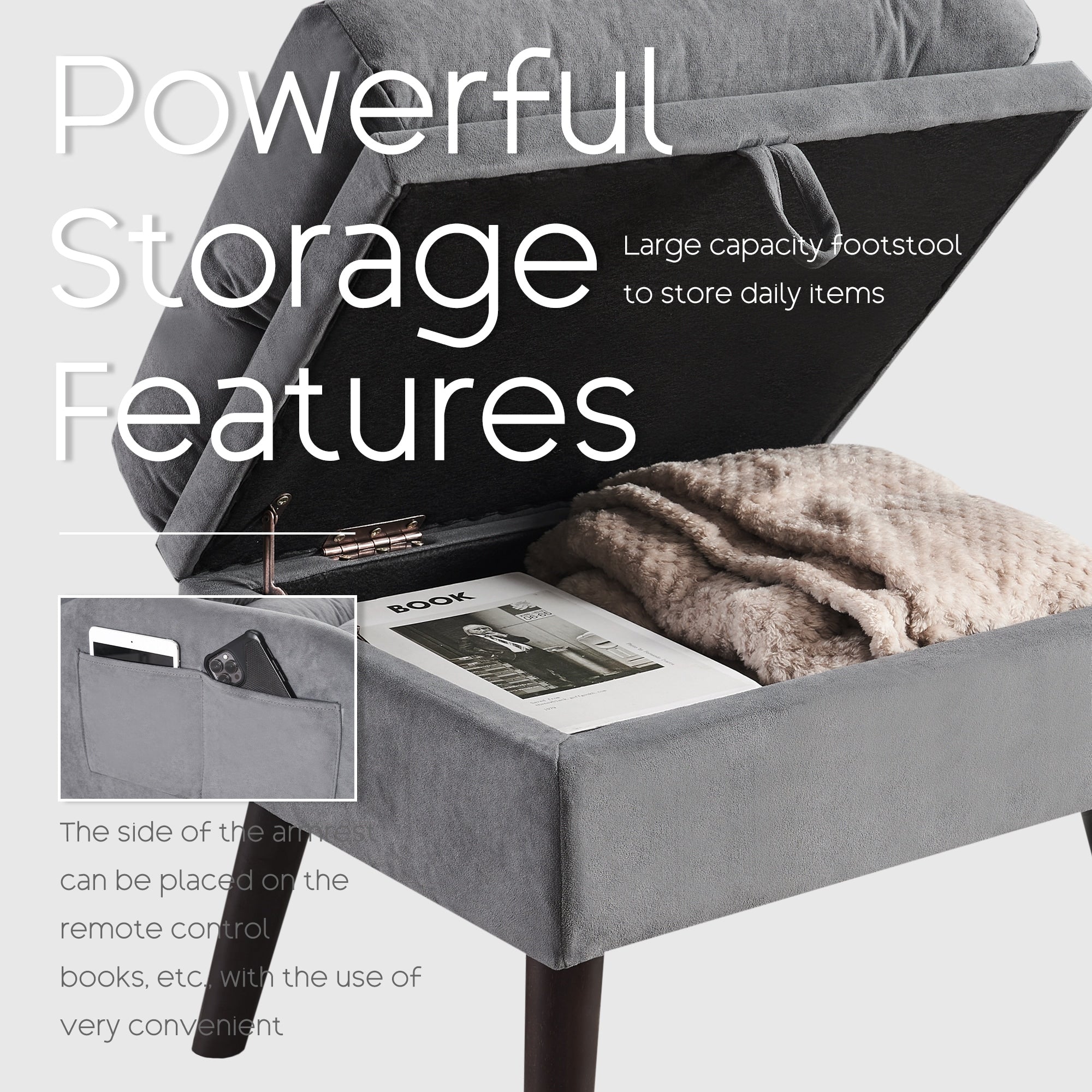Fauteuil d'appoint HOMYKA avec dossier réglable et pouf de rangement