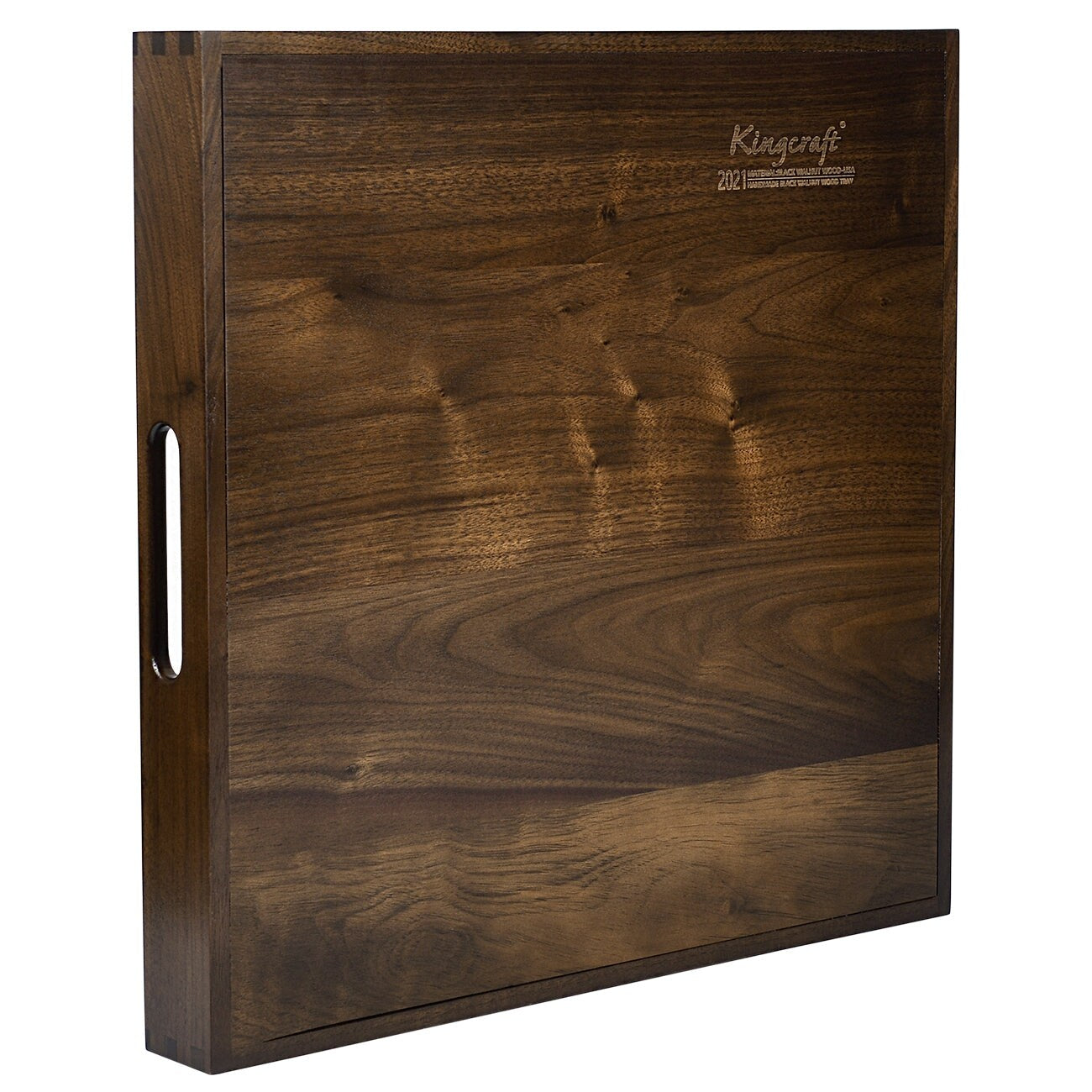 KINWELL Square Black Walnut Wood Serving Tray Ottoman Tray with Handles