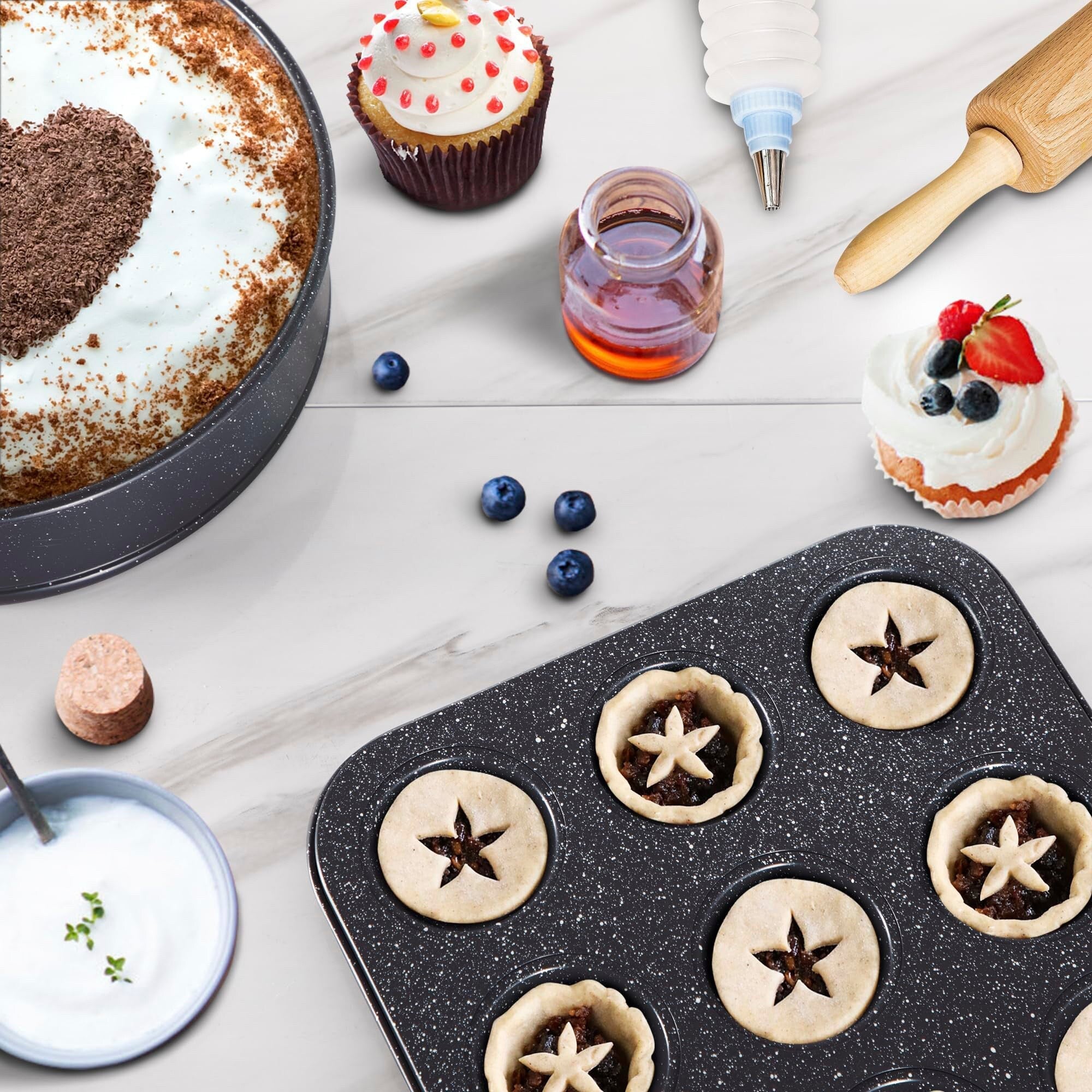 - Natural marble-coated interior for non-stick cooking and easy cleanup