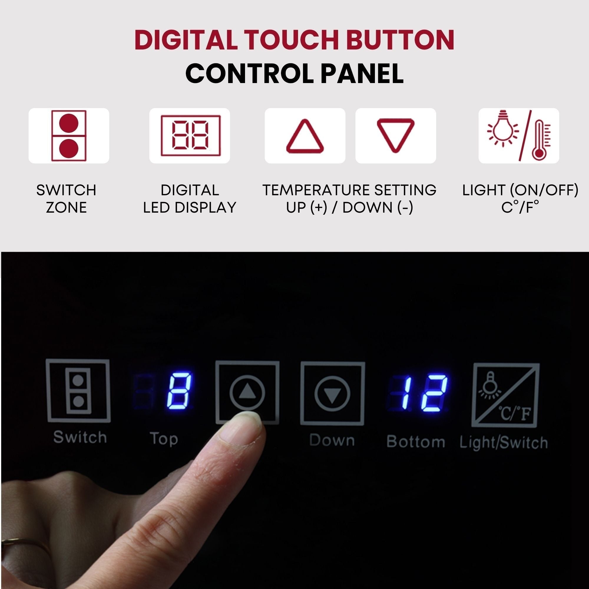 - Le refroidissement à double zone contrôlé séparément conserve les vins rouges et blancs à leurs températures idéales