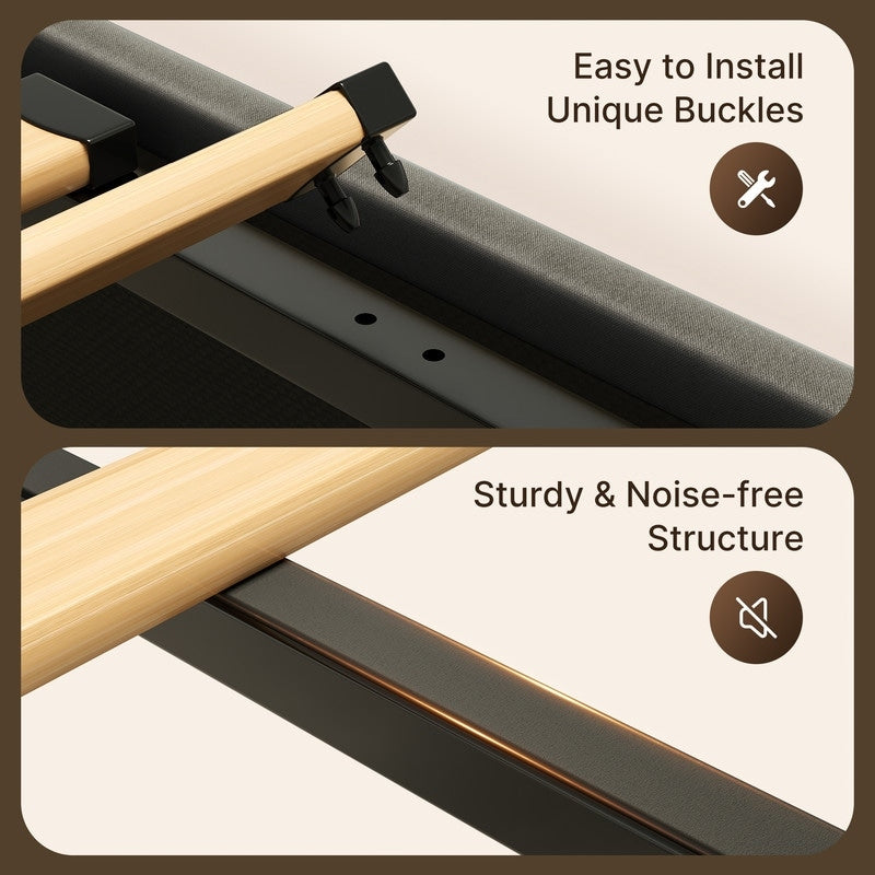 - Confort amélioré : Le tissu rembourré du cadre de lit et de la tête de lit ajoute du confort, ce qui en fait un endroit confortable pour s'appuyer tout en lisant ou en regardant la télévision.