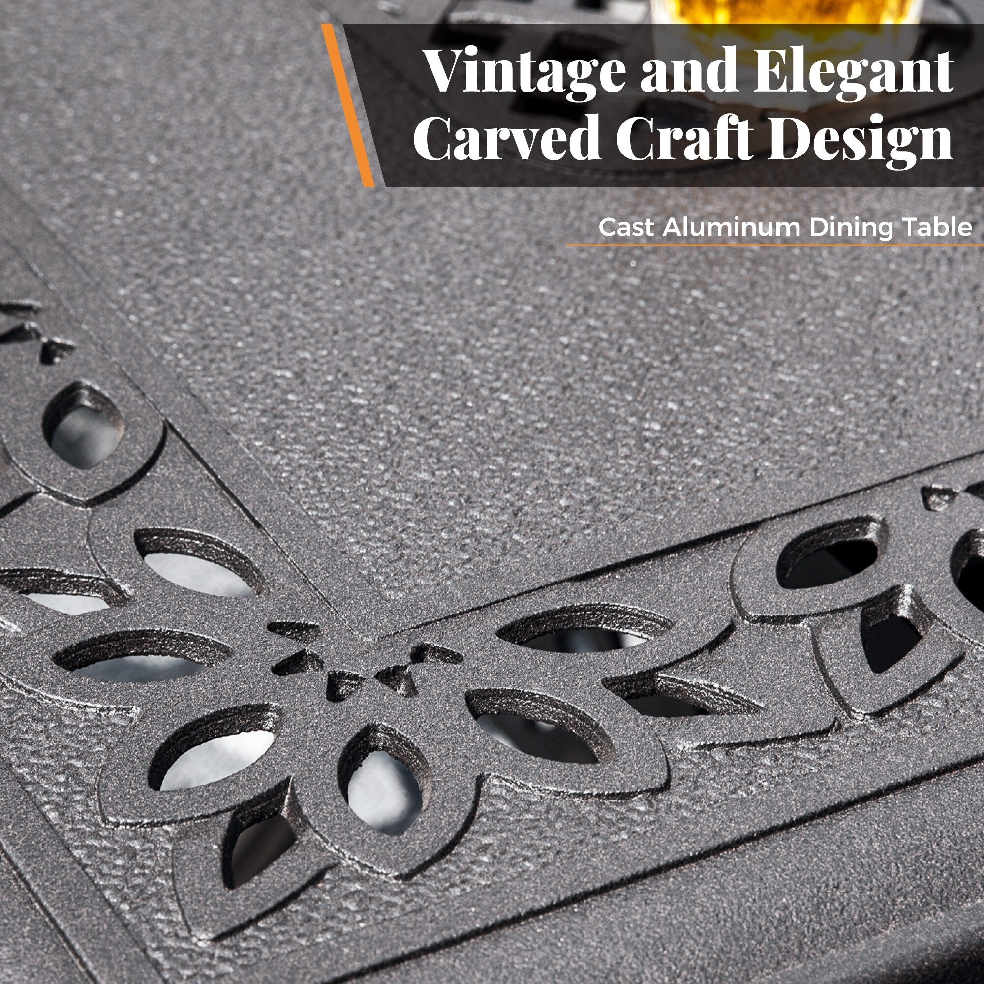 MAISON ARTS 7-Piece Cast Aluminum Patio Dining Set with Expandable Rectangular Table & 6 Cast Aluminum Chairs