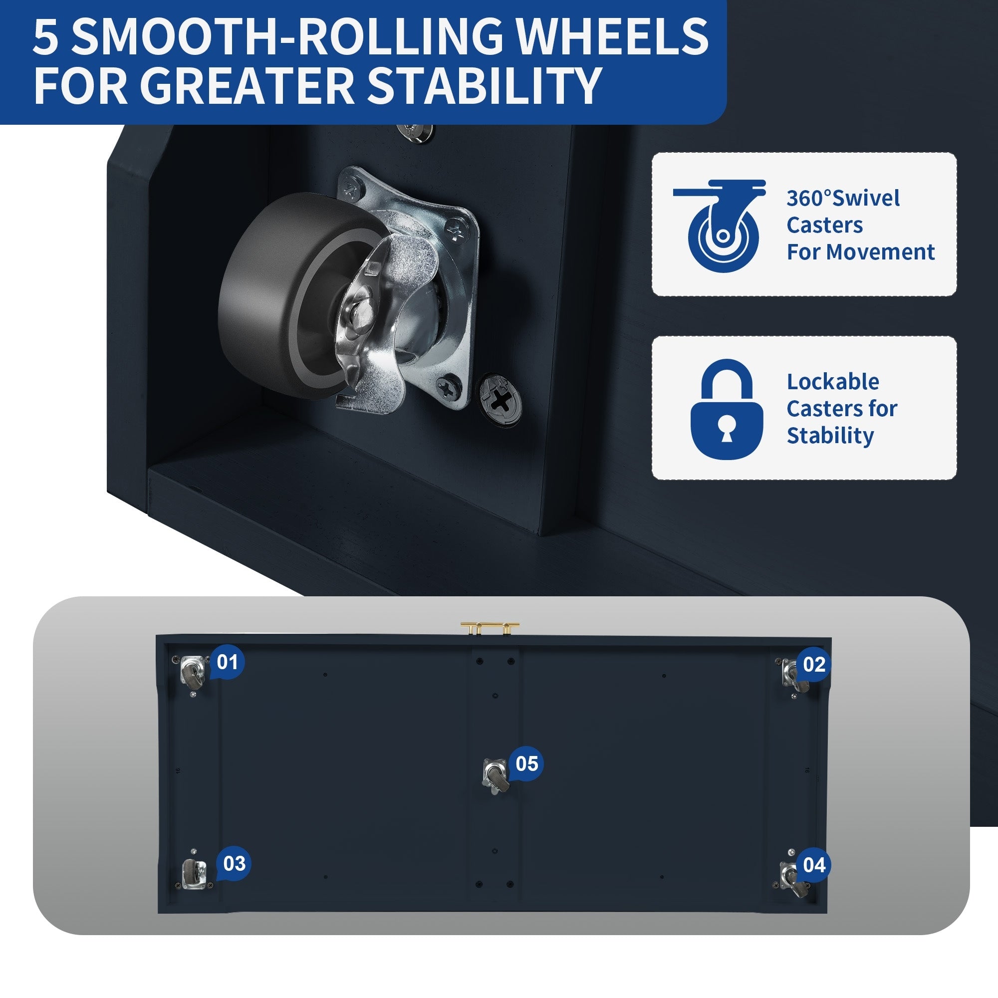 Découvrez notre meuble basculant pour poubelles ! Cet accessoire indispensable à votre îlot central vous permet de garder votre cuisine et votre salle à manger propres et fraîches en rangeant en toute sécurité une poubelle de 40 litres (non incluse) pour éviter les odeurs. Il offre un grand espace de rangement avec deux tiroirs pour les ustensiles, la vaisselle et les fournitures de bureau, ainsi que trois étagères latérales ouvertes pour les épices. L'étagère réglable à l'intérieur du meuble permet de ranger divers ustensiles de cuisine. Ce chariot polyvalent est équipé de roulettes verrouillables pour un déplacement facile et un verrouillage pour la préparation ou le rangement des aliments. Idéal pour les cuisines, les salles à manger et les restaurants, ce meuble est fabriqué en panneaux MDF certifiés CARB phase II. Le montage est simple et les instructions sont claires.