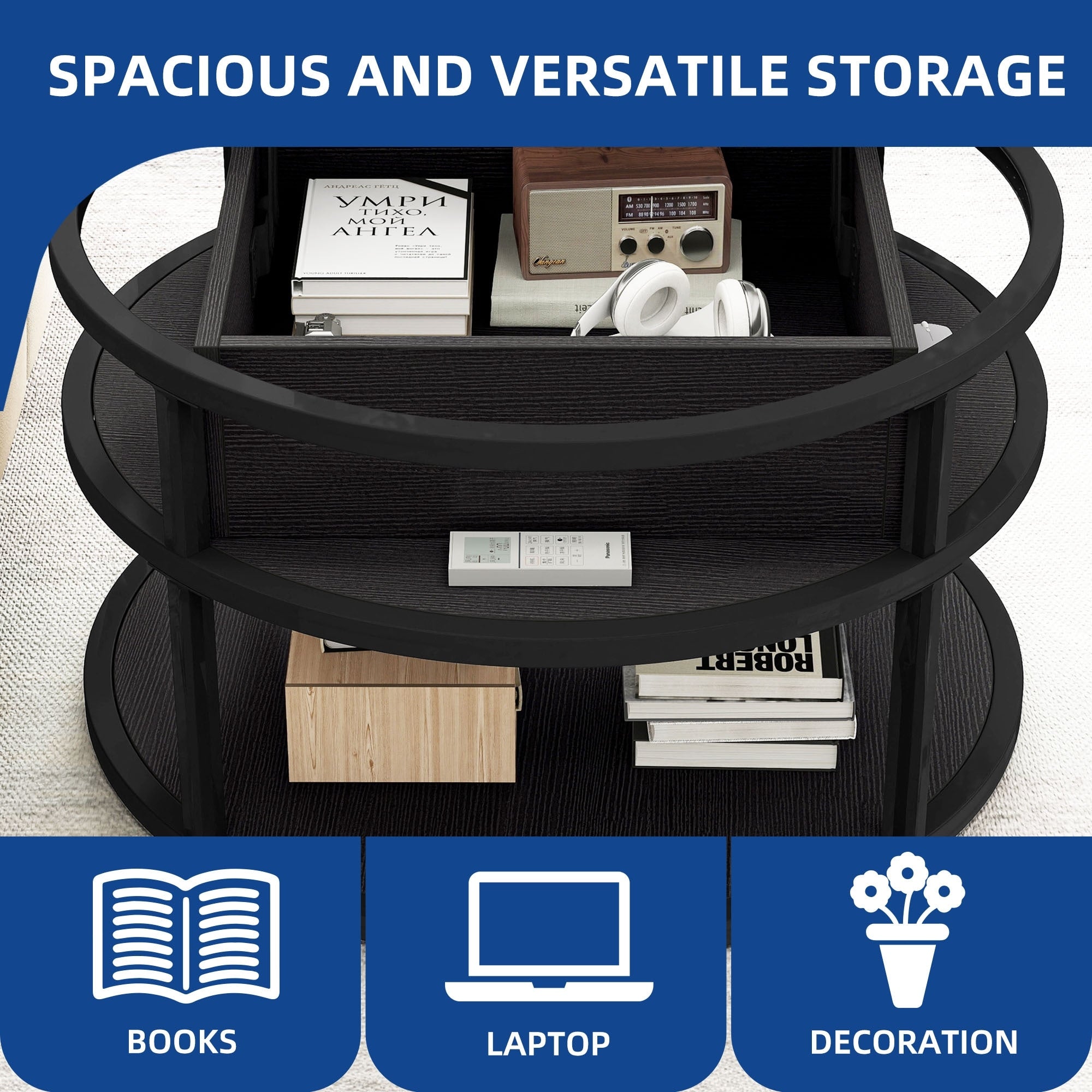 Moasis Round Lift Top Coffee Table with Hidden Storage