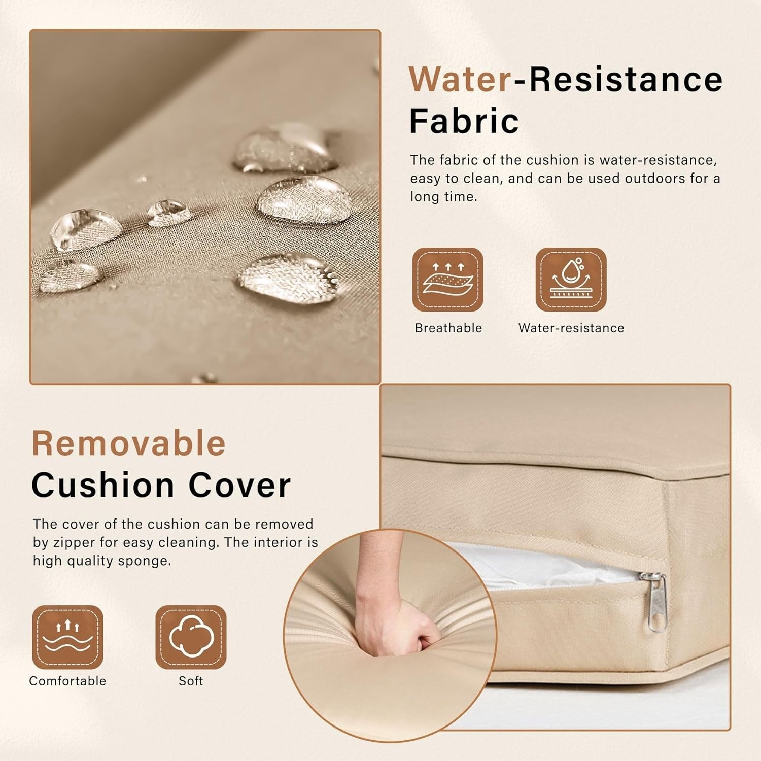 - Les housses de coussin amovibles en polyester sont résistantes aux intempéries avec un rembourrage en éponge