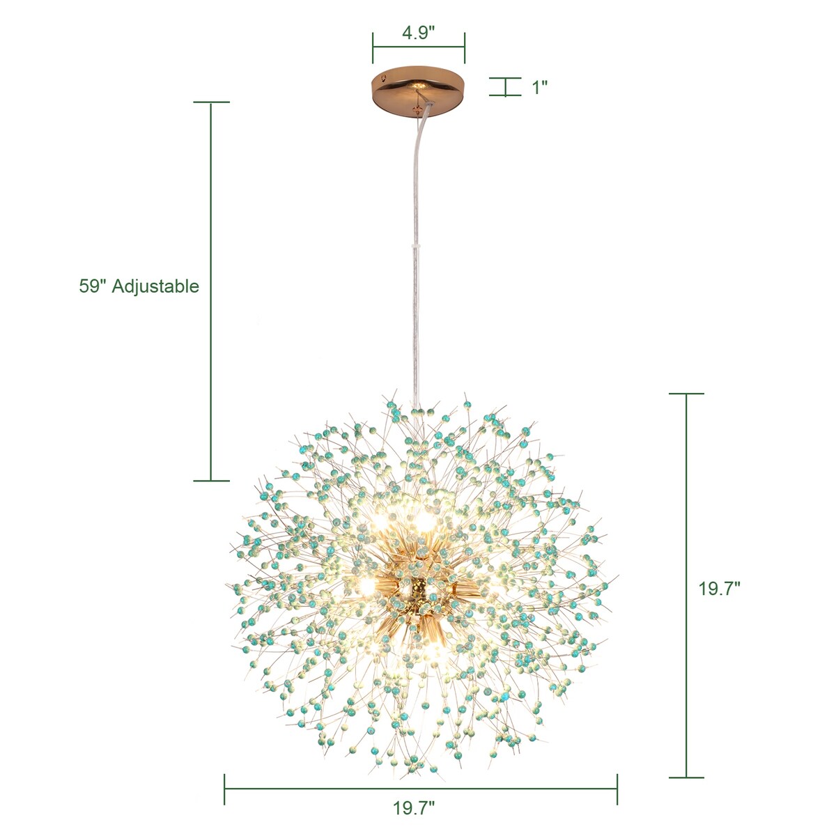 Make a statement with this resplendent Sputnik firework crystal chandelier. Sparkling crystal beads adorned with delicate wires radiate from shiny gold or chrome spheres. It features handcrafted crystal flowers that can be bent and adjusted to create your own signature look. This modern and elegant design is perfect for decorating your living room, bedroom, dining room, kitchen, bathroom, foyer, hallway, office or children's room.