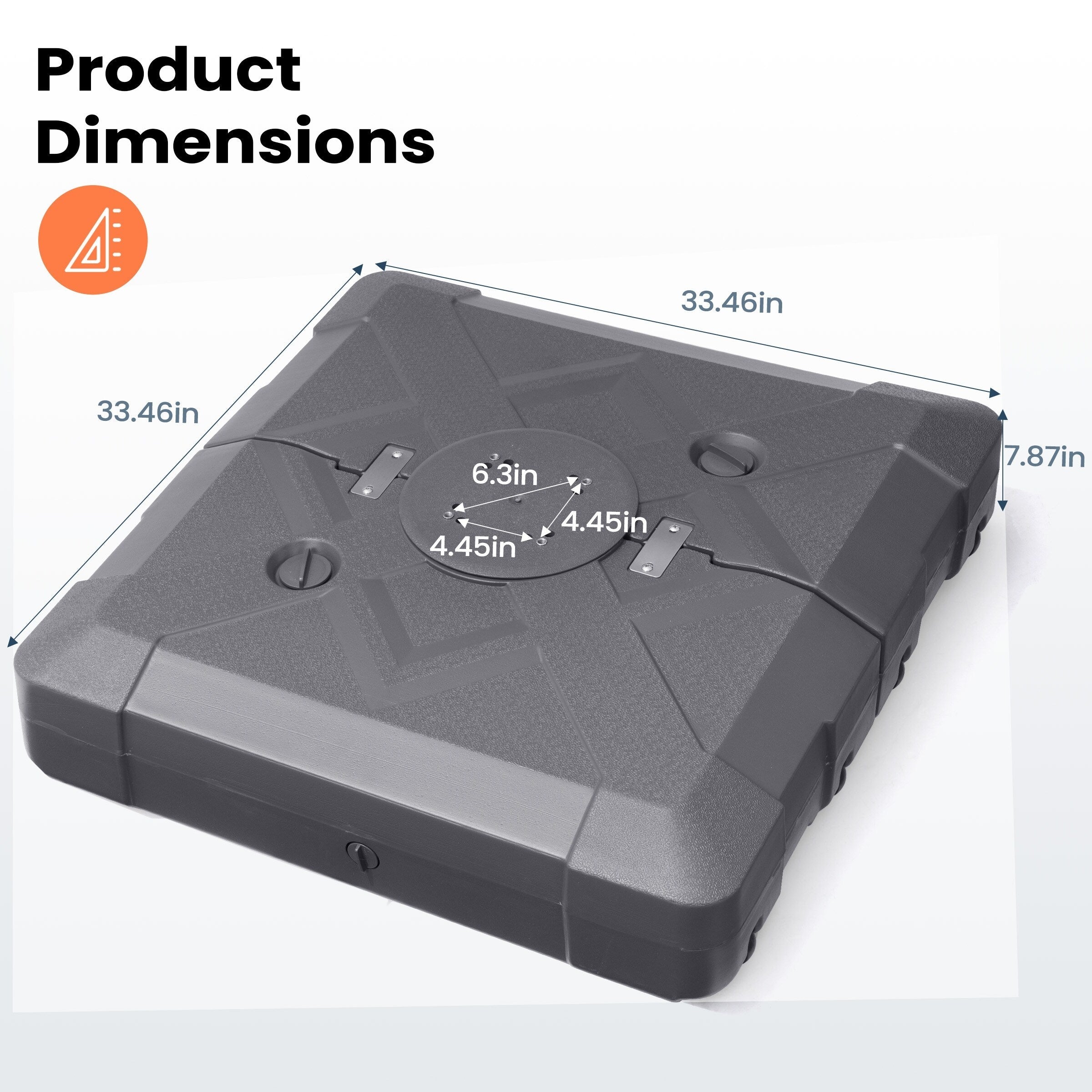 - Dimensions hors tout : 33,46 pouces de long x 33,46 pouces de large x 7,87 pouces de haut