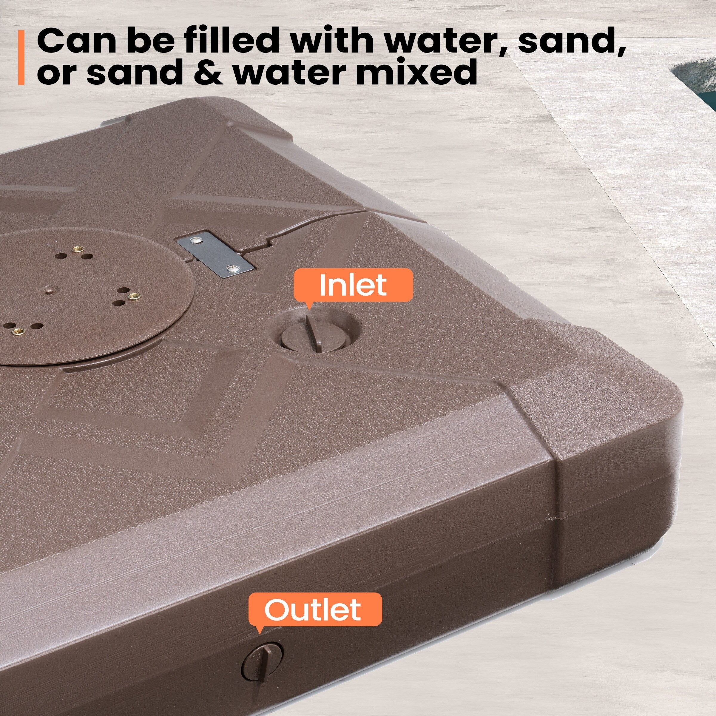Sécurisez votre espace extérieur et donnez un aspect 3D grâce à ce pied de parasol déporté de 100 kg avec roulettes de Pellebant. Ce poids peut être rempli d'eau ou de sable pour plus de stabilité et de soutien. Il empêche votre parasol de s'envoler par temps venteux.