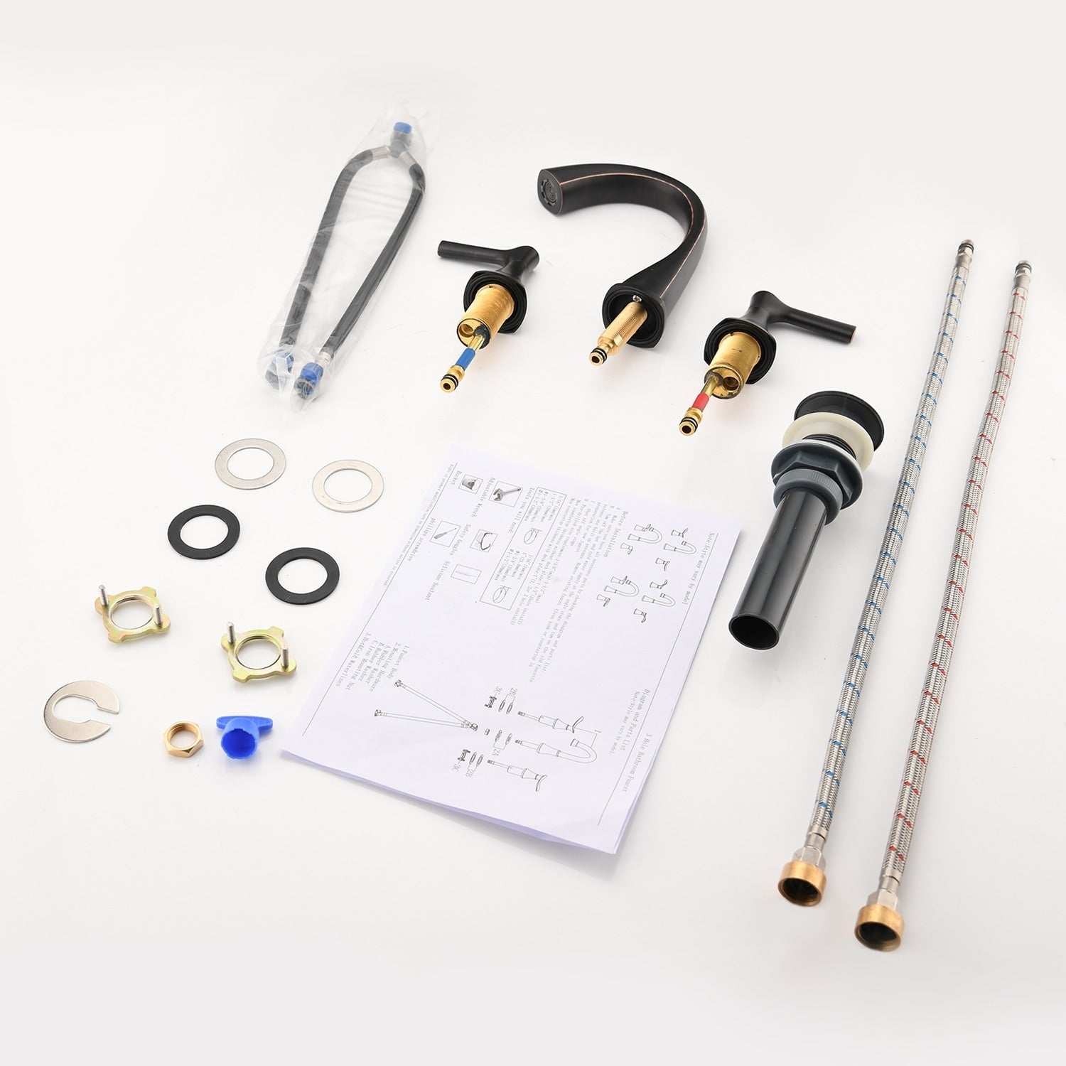Introducing the Proox 8' Widespread Bathroom SpotShield Basin Faucet w/ Drain Assembly, the perfect combination of beauty and functionality. This faucet boasts exceptional durability due to its hand-polished, textured finish and state-of-the-art technology. With a quick lock DIY installation technology and an updated pop-up drain, you can easily update your three-piece faucet. The advanced ceramic cartridge ensures a smooth operation, providing precise control of water temperature and volume. The two-handle design offers accurate temperature and flow control, while the hot/cold indicators make it easy to use.