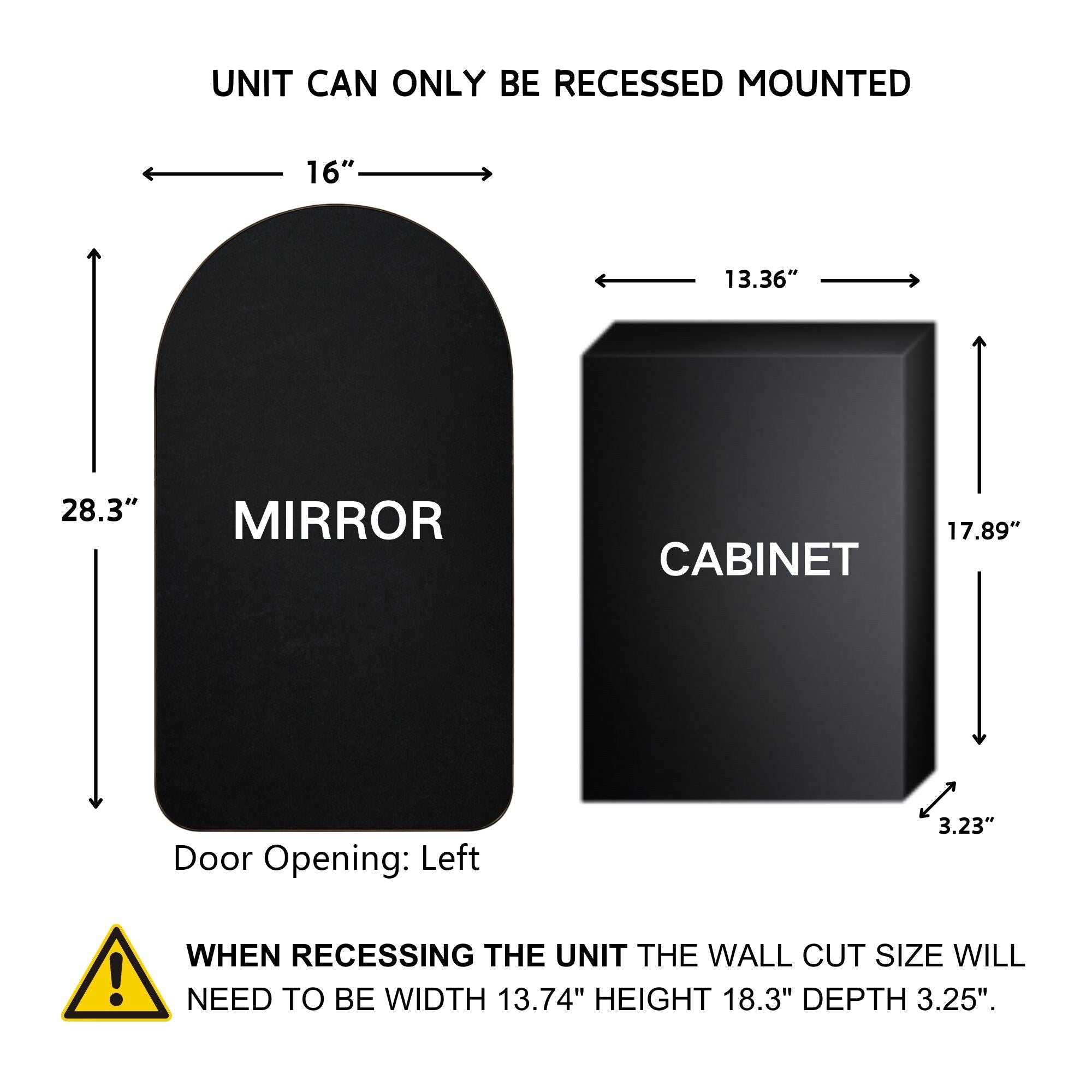 - Armoires à pharmacie cintrées à cadre métallique : portes en métal haut de gamme, finition noir mat. Charnières à fermeture automatique.