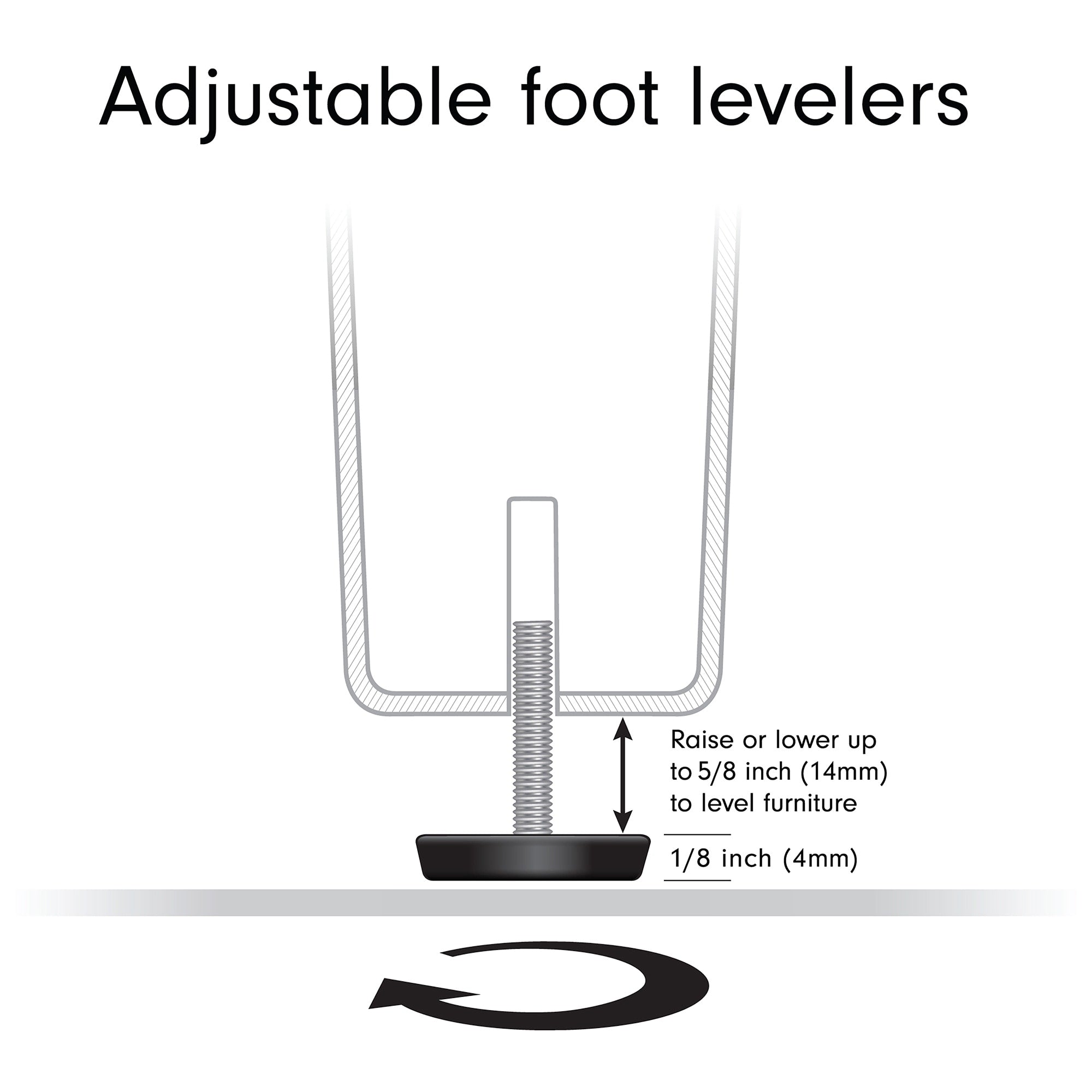 - Le plateau supérieur peut supporter un poids de 75 lb. Les étagères inférieures peuvent supporter 25 lb chacune.