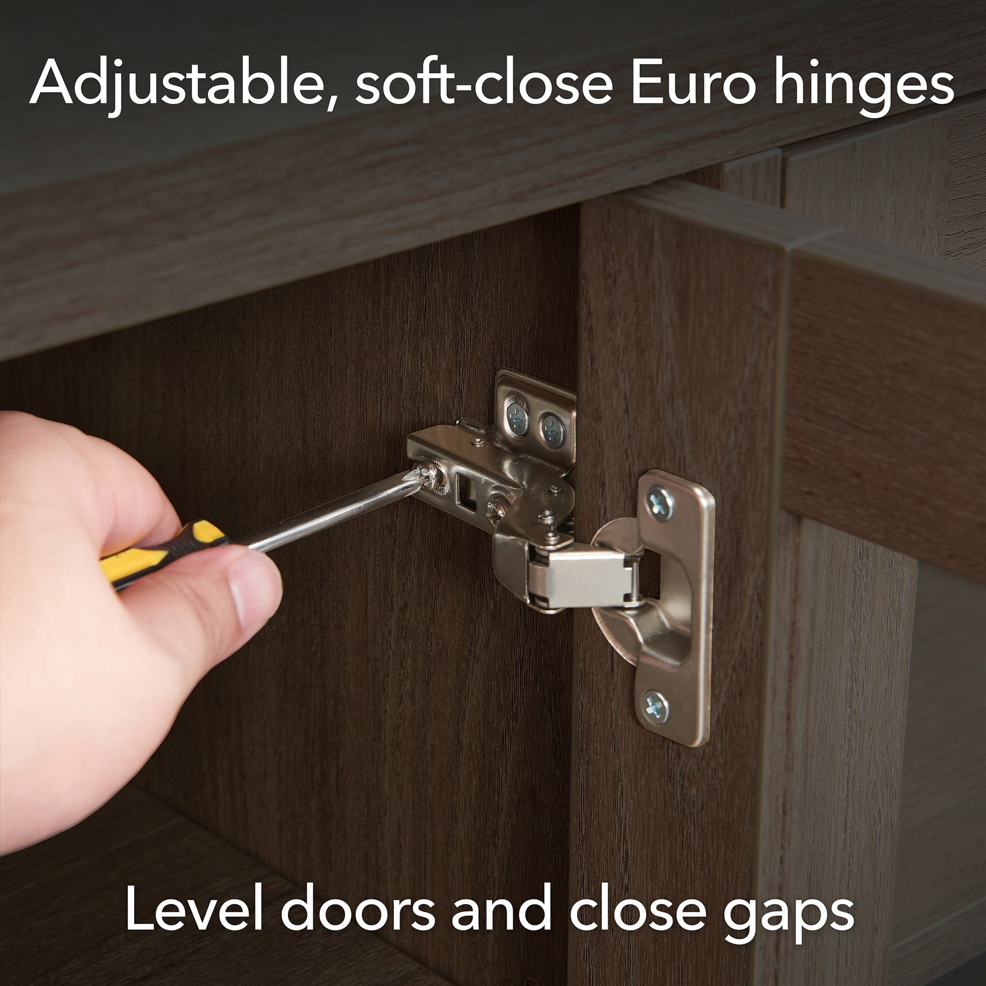 Alliez fonctionnalité et design transitionnel classique avec ce meuble TV moderne. Son bois riche crée une palette neutre et chaleureuse qui s'harmonisera parfaitement avec toutes les palettes de couleurs, tandis que son style classique s'harmonise parfaitement avec le style de votre salon, bureau ou salle de jeux. Ce meuble à dossier massif est doté de deux grands caissons fermés avec une élégante quincaillerie finition laiton. Des découpes pour la gestion des câbles et des étagères intérieures réglables permettent d'organiser vos rangements multimédias et vos consoles.