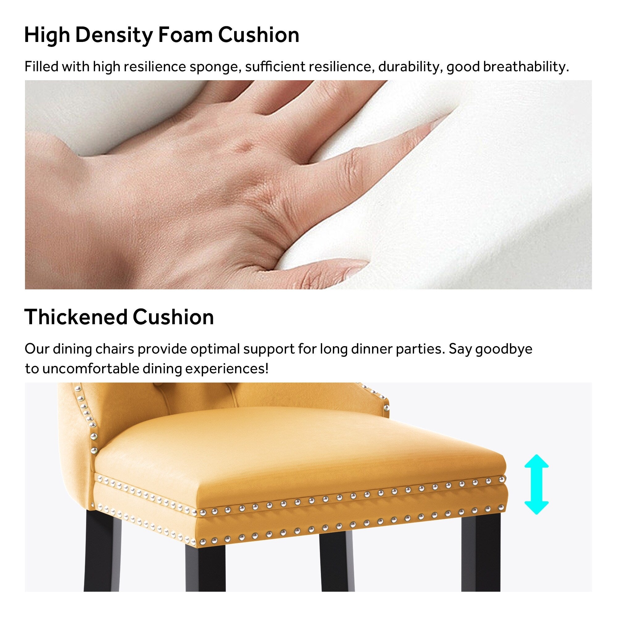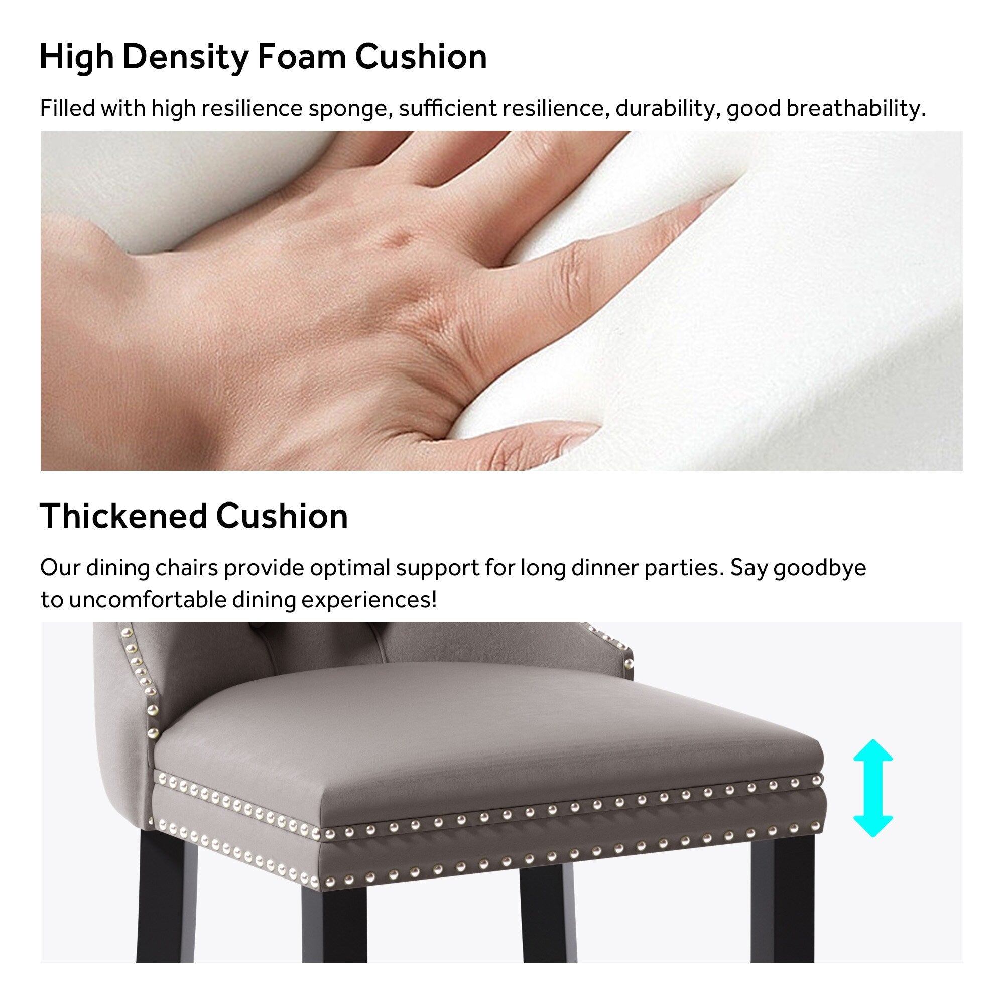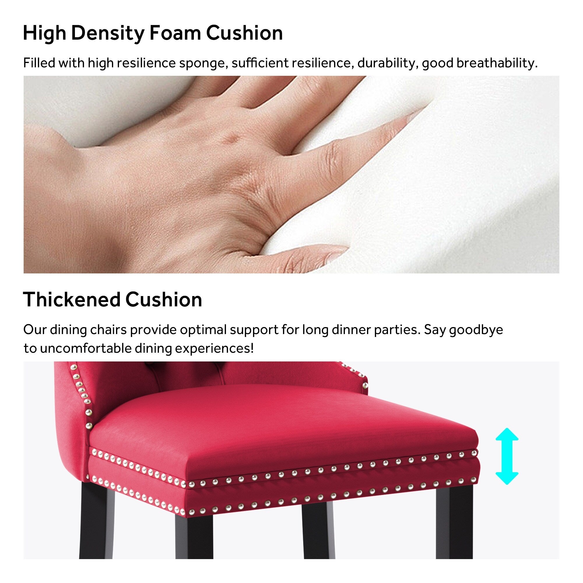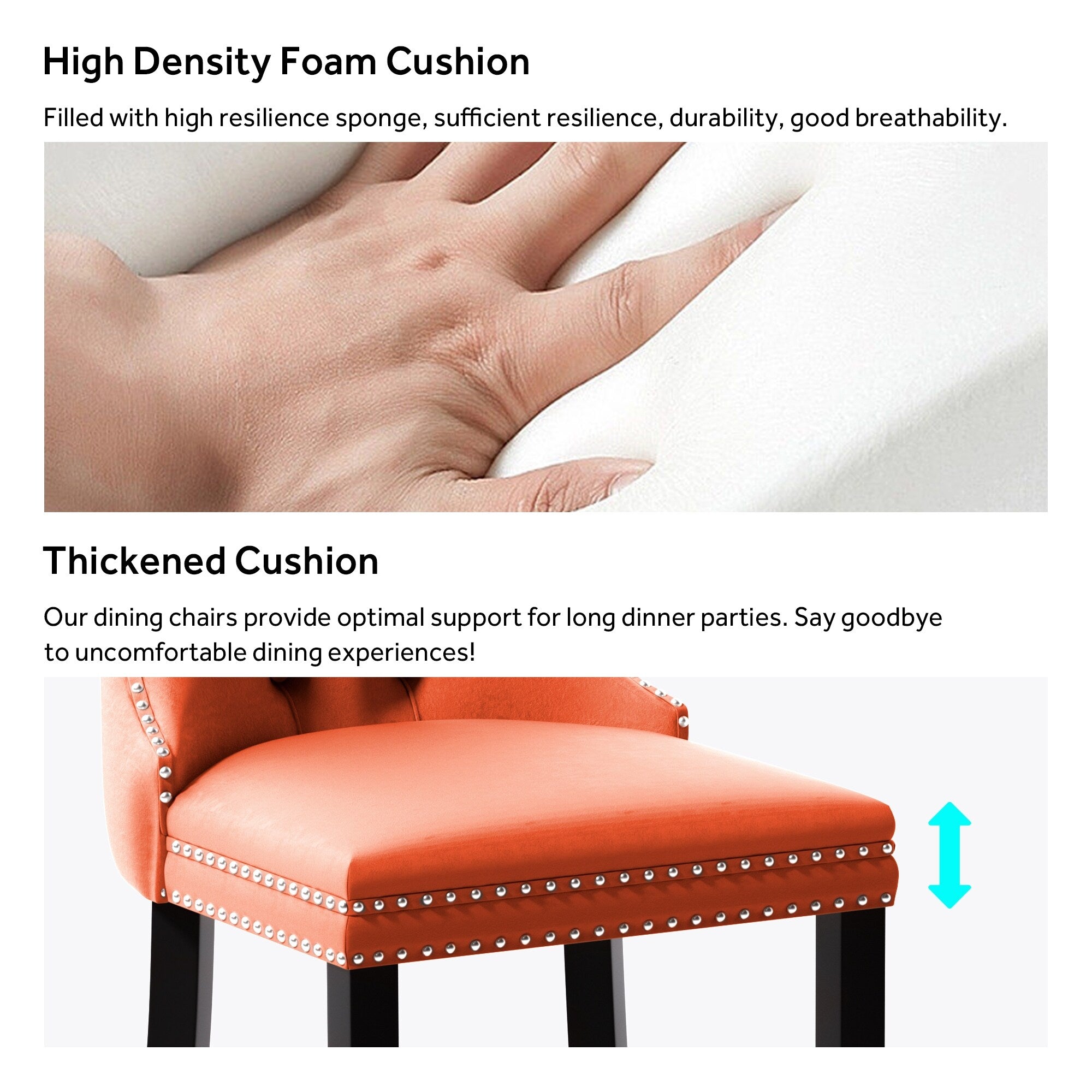 - Chaises de cuisine douces et confortables : le coussin est composé d'une mousse haute élasticité et d'un panneau multicouche, avec une structure à double élasticité et une éponge à fort rebond, pour une assise confortable. Il apporte une ambiance chaleureuse à la salle à manger, au salon ou à l'appartement.