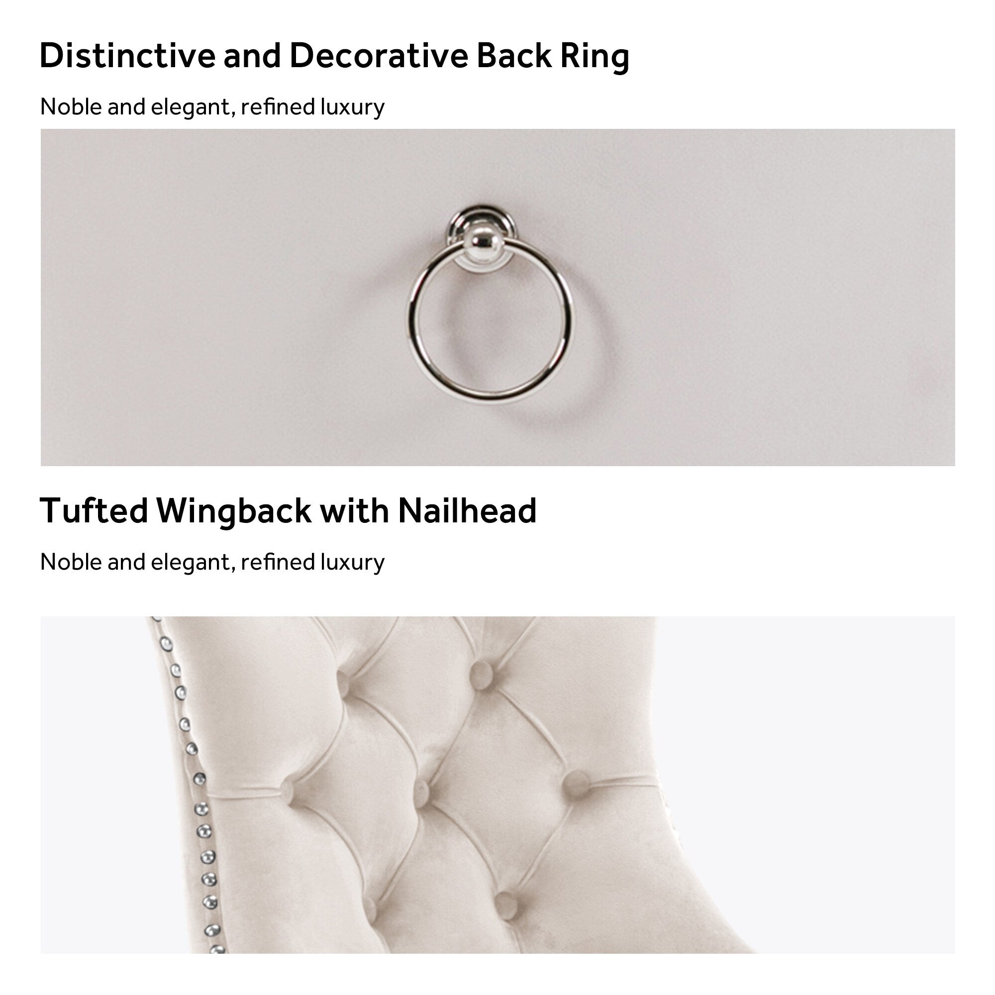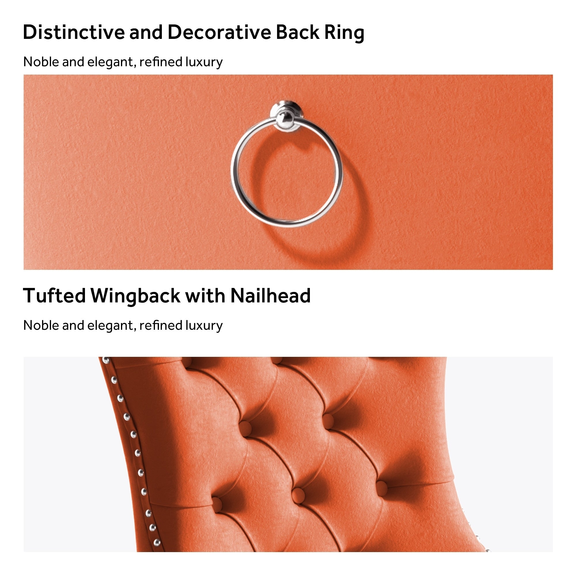 Ces chaises de salle à manger à oreilles sont fabriquées en velours de haute qualité, très résistant à l'usure et à la décoloration. Épais et luxueux, ce tissu offre un toucher délicat. Cet ensemble de chaises en velours arbore un style Mid-Century très moderne. Son dossier haut offre un soutien confortable et solide. De nombreux rivets décoratifs ornent le coussin et le dossier, lui conférant noblesse et élégance, tout en lui conférant une sensation de luxe raffiné. Nous fournissons des instructions et des vidéos de montage. Pour toute question, n'hésitez pas à nous contacter.