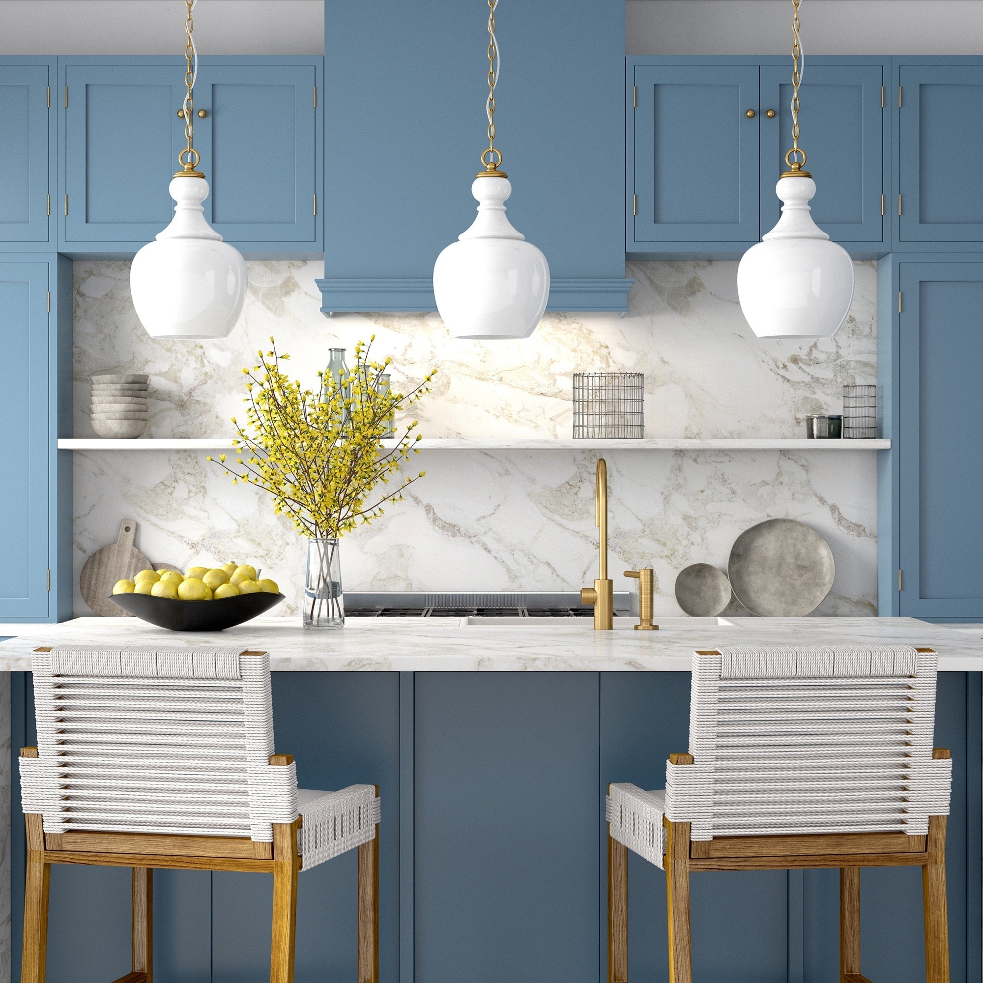 Color:11" Brushed Brass with White Milk Glass