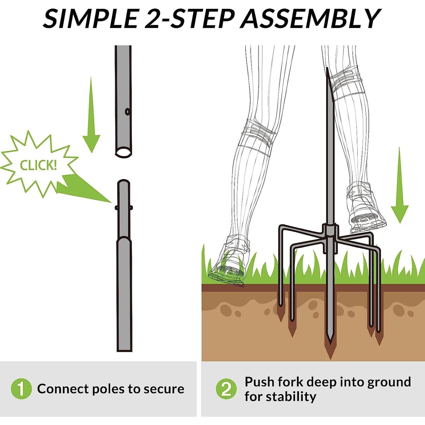 - EASY ASSEMBLE: Walensee Outdoor Light Poles is made of 2 high-quality 4.8FT steel pipe with 1.2mm thick steel pipe and 5 solid anchor points. The metal hanger can be installed as long as the two sections of steel pipe are screwed together, don't need any tool. Just plant the bottom pole into the ground by pressing the forked end into the dirt. The angle of its base can be rotated and adjusted to find the support point you want. No climbing ladder with this simple twist connection. Safe and Easy.